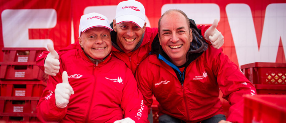 Den ganzen Tag an der Strecke stehen, Straßen absperren, Essen und Getränke ausgeben, Mehrwegbecher sammeln und wieder transportfähig einpacken – und dabei noch gut gelaunt den ganzen Tag Läuferinnen und Läufer anfeuern!